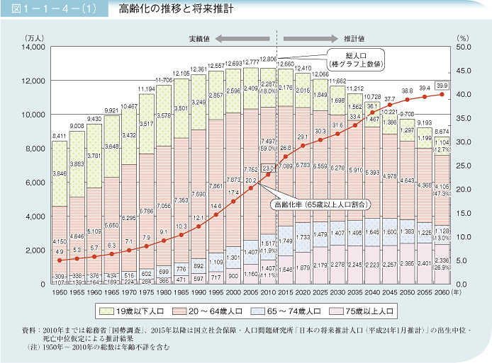 まずは、日本の高齢者の割合を内閣府のデータで確認しましょう