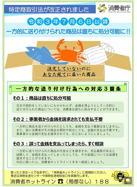 ◆7月6日から「送り付け商法」に対するルールが変わります◆