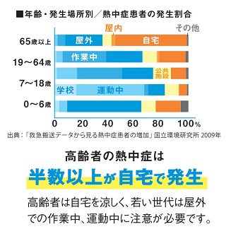 ◆65歳以上の熱中症患者の半数以上が自宅で発生しています