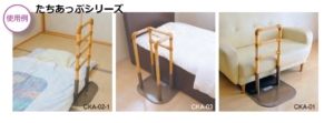 弊社では上がり框用手すり以外にも各種手すりを取り揃えていますので、玄関以外でも転倒が不安な場所があれば一度福祉用具専門相談員にご相談ください。