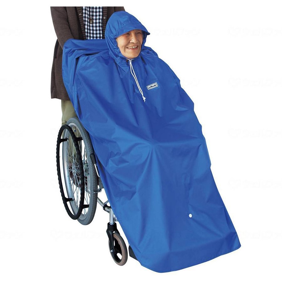 ●レインポンチョは、座ったまま簡単に装着できる車椅子用レインウェア。