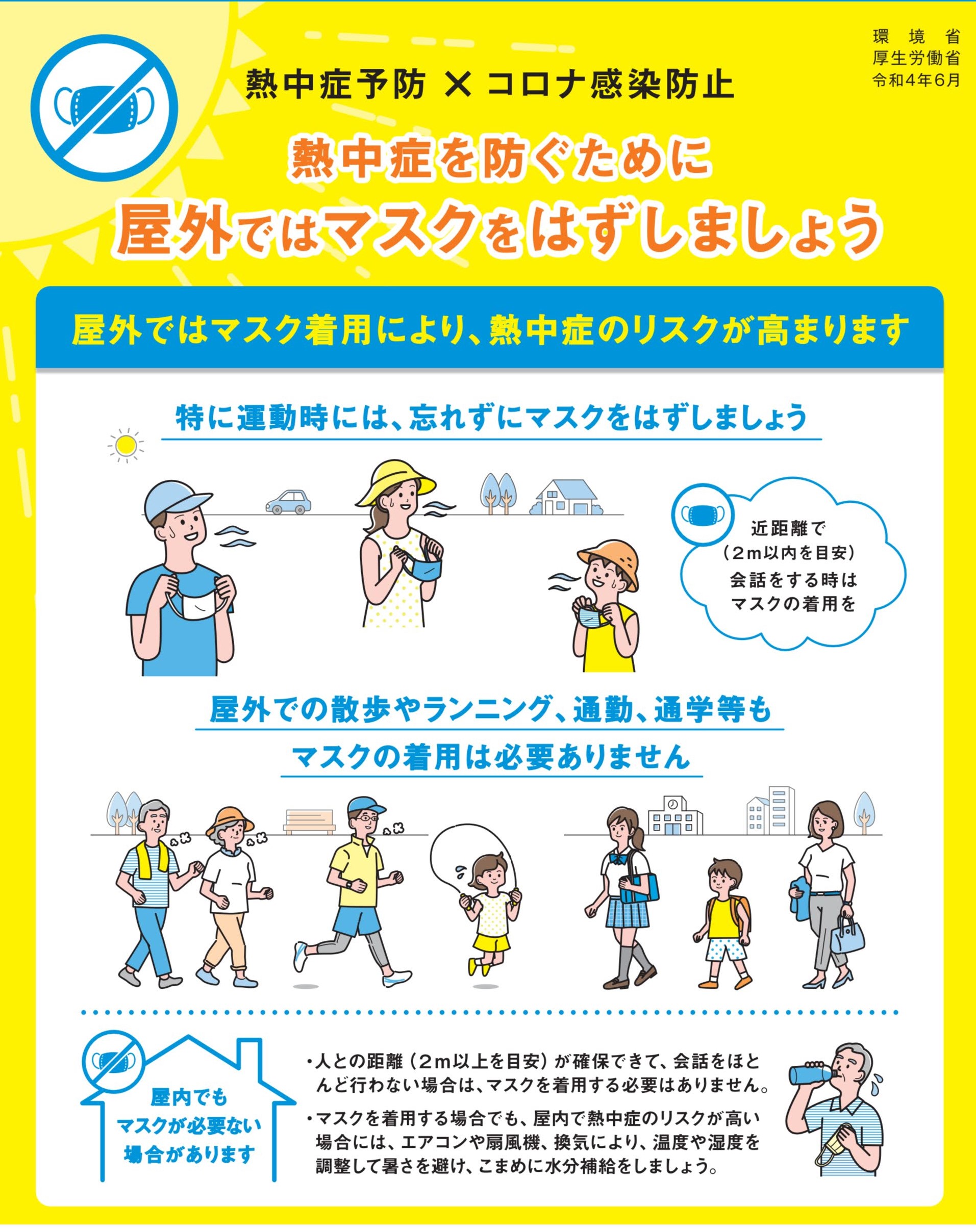暑い日が続きますが、コロナ感染対策のマスクが夏には熱中症リスクを高めます。
